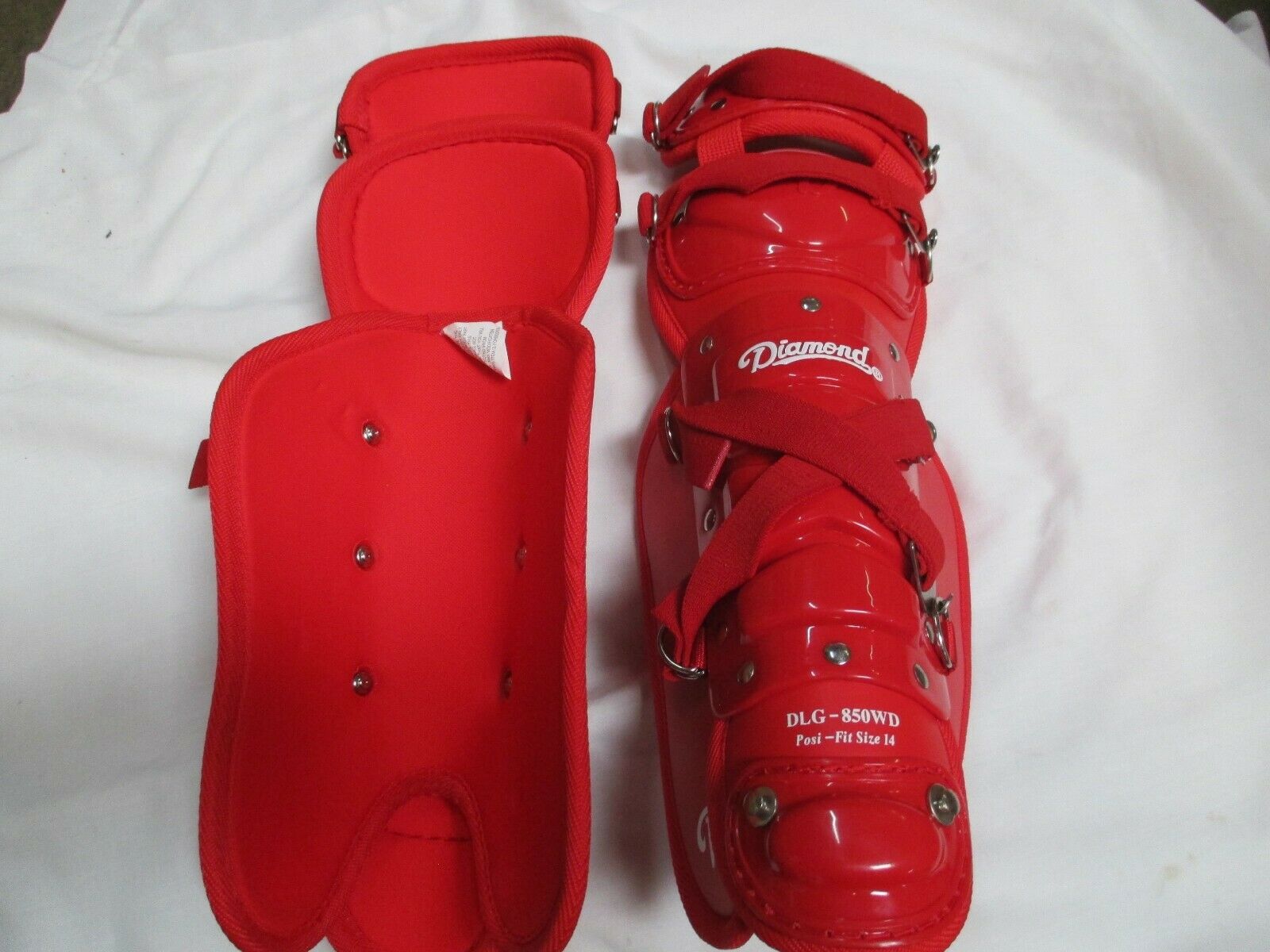 DIAMOND DLG850WD BASEBALL/SOFTBALL CATCHERS LEG GUARDDiamond's DLG Double Knee Leg Guards feature fully ventilated wrap around shin protection. Breathable gun metal grey padded mesh backing allows for comfort and mobility.Fully-ventilated wrap around shinBreathable padded backingToe Extension RivetsGreater protection with contoured fitSize: 14''