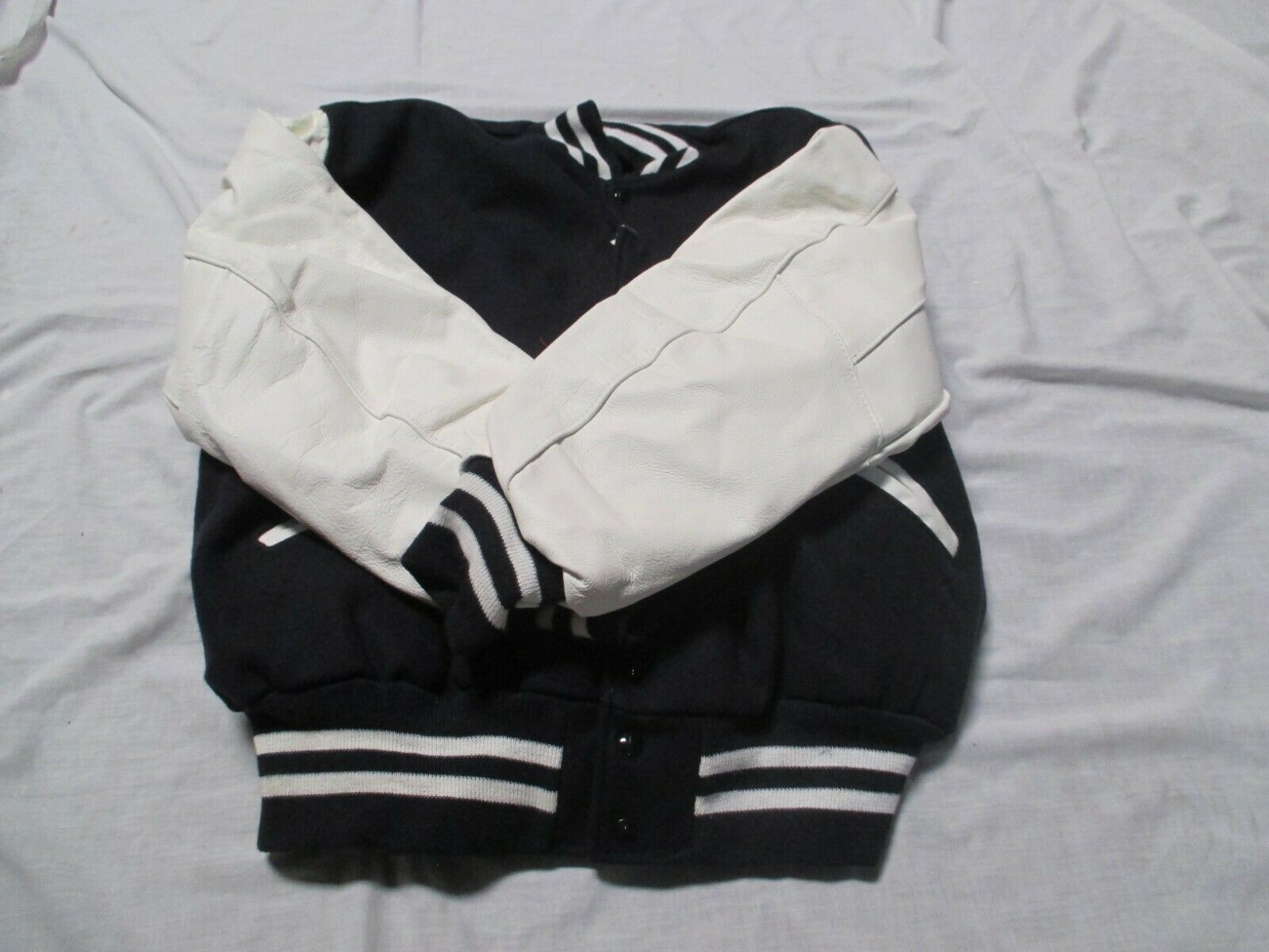 DELONG ADULT NAVY BLUE WITH TWO WHITE STRIPES QUILT LINED SCHOOL LETTER JACKET