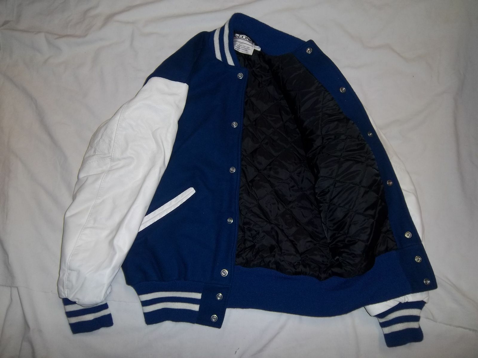 Royal Blue Wool Body with White Leather Sleeves
